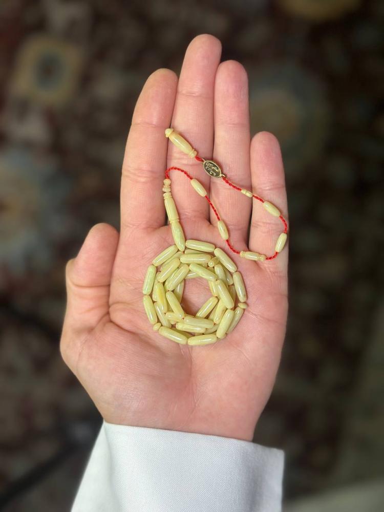 مسباح مساطر فستقي معرق قديمخراطة الزعيمقصة الخرز: برميلي 13.5*4عدد الخرز :41السبيرات: شاهد وكبوس وكسار